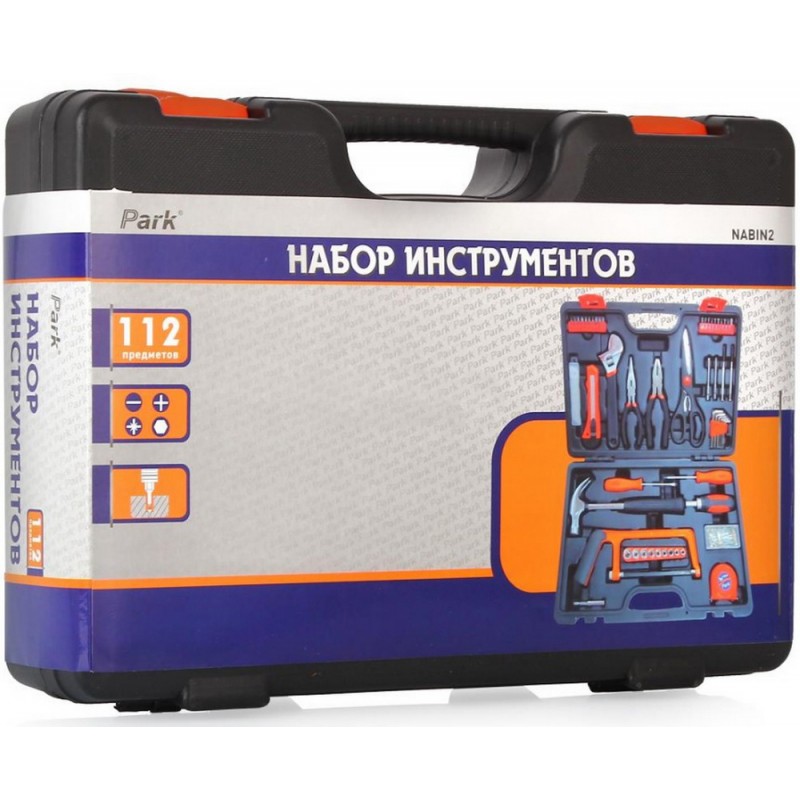 Именно для любителей и профессионалов фирма «Park» предлагает удобный пластиковый кейс с набором многофункционального инструмента, который удовлетворит требования мастера при выполнении большого количества работ. С помощью набора инструментов «Park NABIN2» из 112 предметов, вы сможете выполнить любые слесарные и монтажные операции.