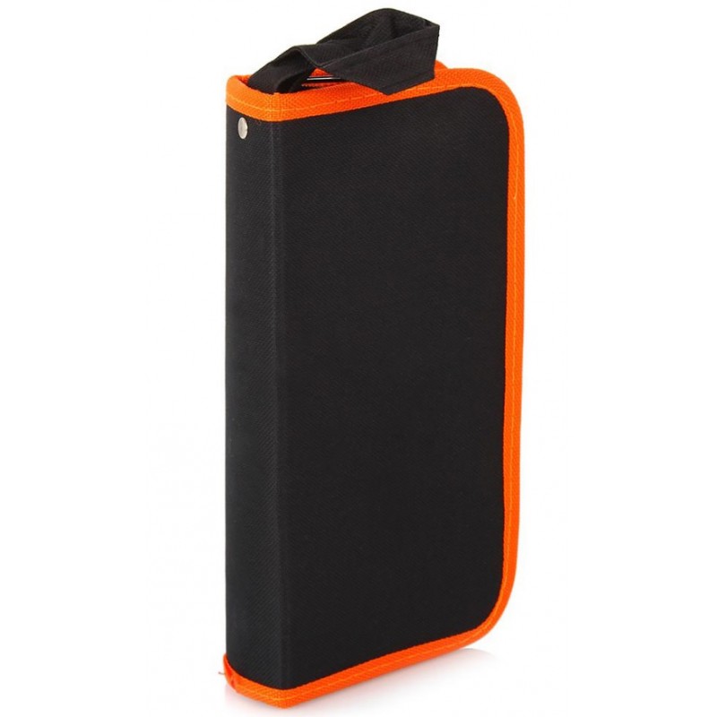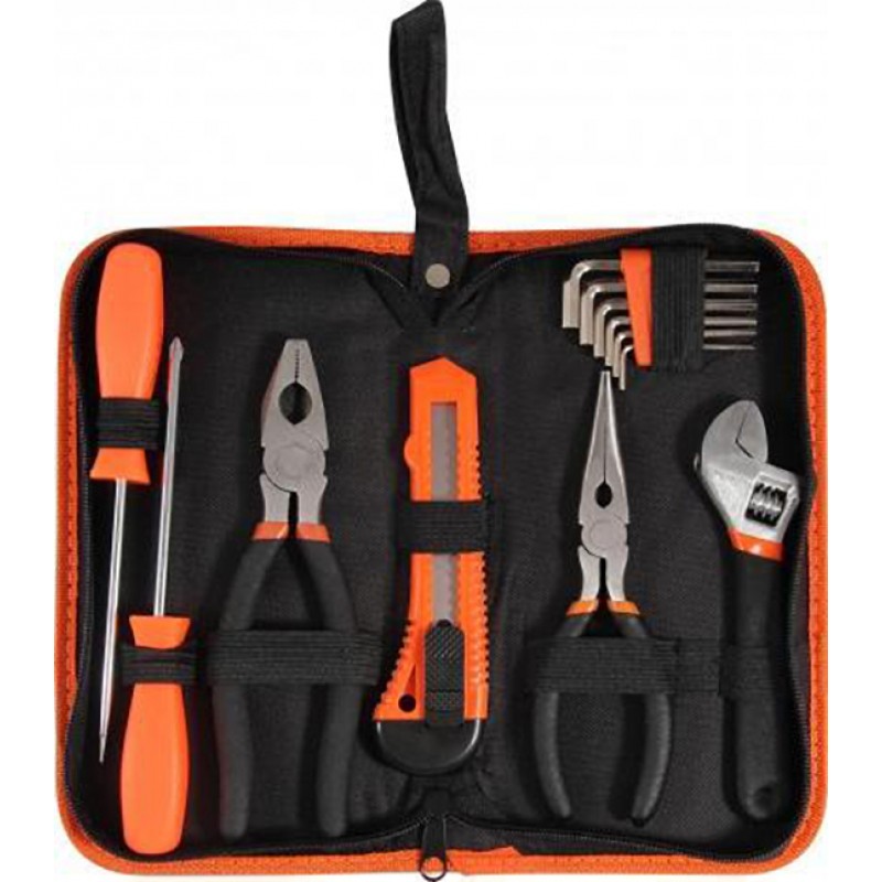 Набор инструментов Park Nabin4 (12 предметов) от известного китайского производителя, является самый экономным в своей линейке и оснащен основными 12 предметами, которые упакованы в элегантный кейс. Кейс выполнен из полиэстера и представлен в черной расцветке с оранжевой оконтовкой. Главное преимущество данного набора- это его мобильность, ведь в силу своих размеров Park Nabin4 можно хранить дома или возить в бардачке своего автомобиля.