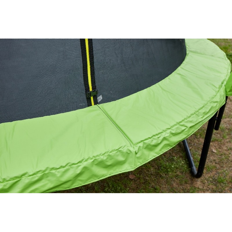 - Прыжковое полотно произведено в США и изготовлено из прочного и упругого полипропилена. Выдерживает высокие и длительные нагрузки, устойчиво к влаге и механическим повреждениям. Также полотно имеет защиту от ультрафиолета, благодаря чему полотно не выгорает и греется намного меньше.