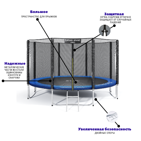 Батут ATLASSPORT 374см - 12ft PRO с сеткой для дома или дачи
