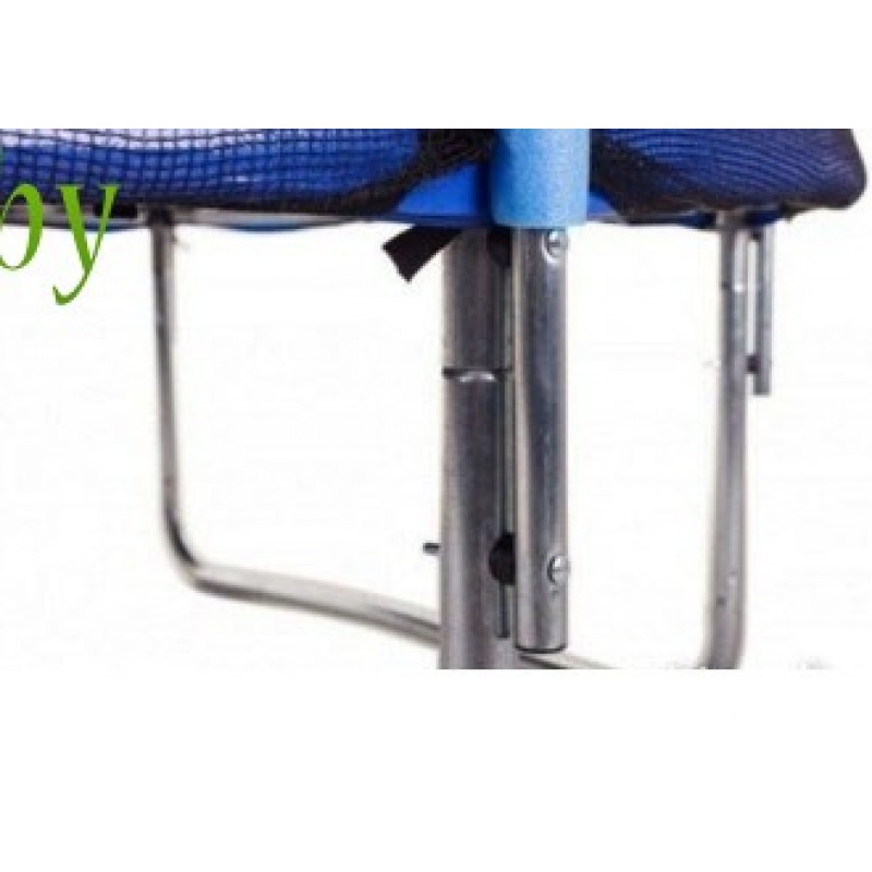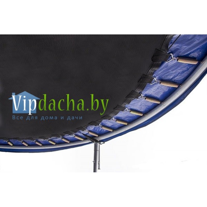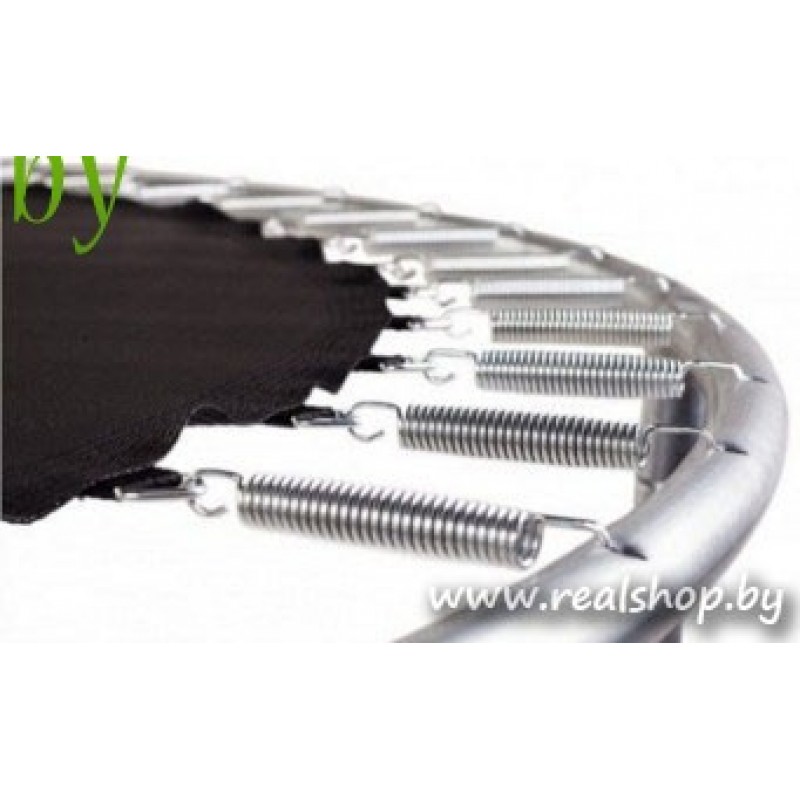 Изготовлен из прочной оцинкованной стали. Батут выдерживает нагрузку в 180 кг и имеет повышенный порог прочности. Надежность конструкции обеспечивается прочной рамой с полимерным двусторонним покрытием, нанесенным методом холодной гальванизации.