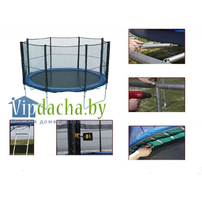 Батут для всей семьи с усиленной рамой, защитной сеткой и лестницей.