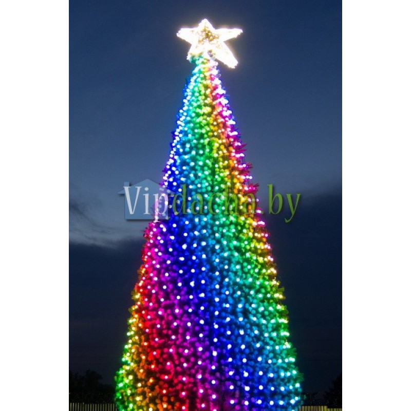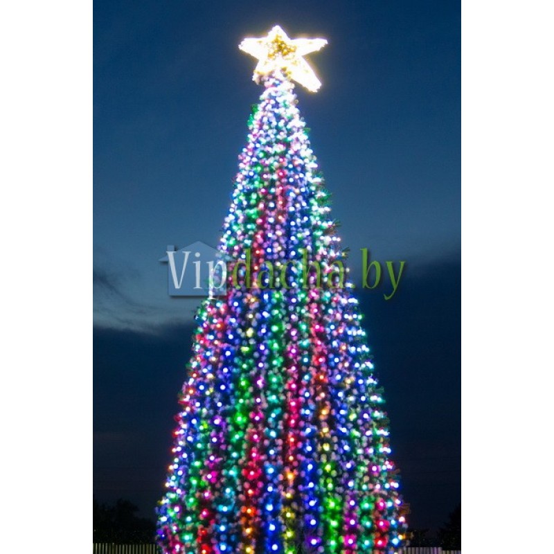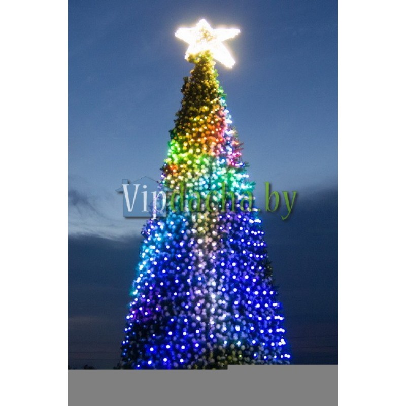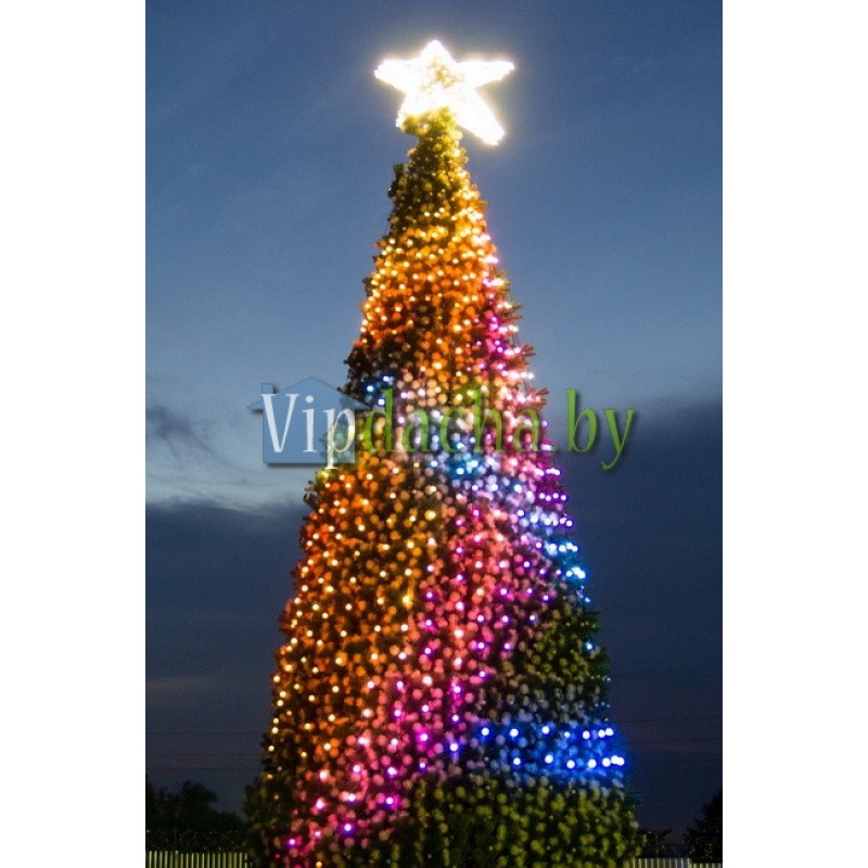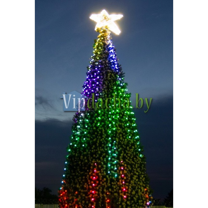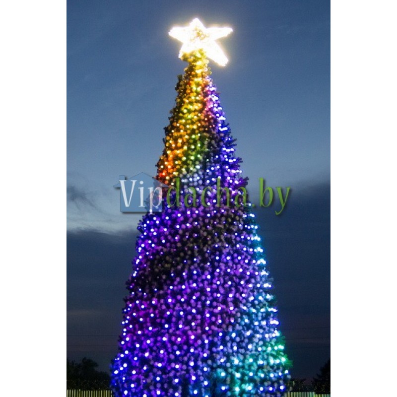 Основу данной конструкции представляют искусственная елка уличного исполнения и светодинамическое 3D освещение. Уличная елка высотой от 8 до 20 метров в совокупности со светодинамическим оформлением создает мощный визуальный эффект. 3D освещение для искусственной елки позволяет выводить одновременно до 22-х светодинамических программ.
