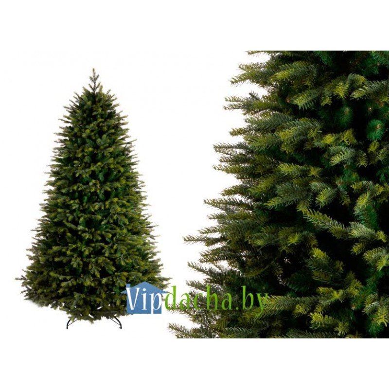 В этой модели используются 80% литых веточек и 20% ПВХ. Ветки ПВХ расположенные возле ствола, делают ёлку плотной и максимально пышной. А начиная с середины и на краях лапти имеют литые иголочки, для достижения максимальной эффекта живой ели. Макушка дерева выполнена из ПВХ.