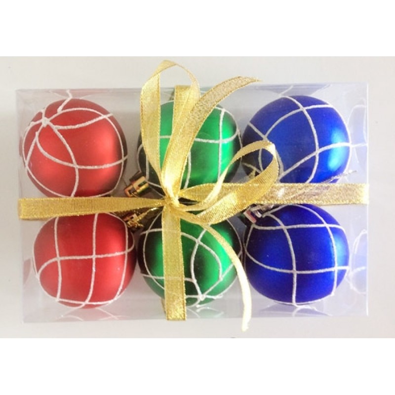 Набор елочных шаров "Кружевная зима", 6 шт, 6 см, разноцветные матов.