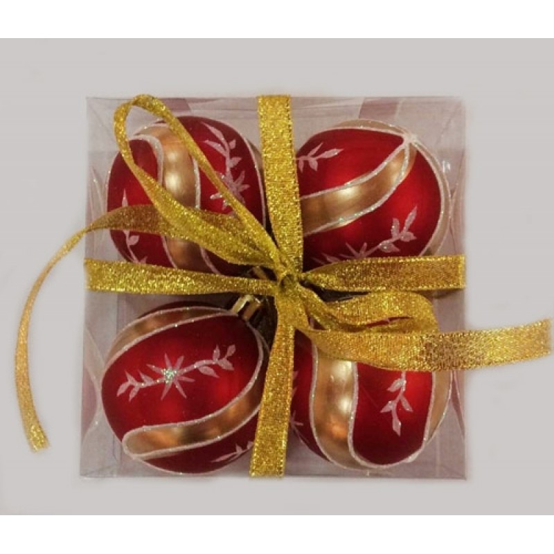 Набор елочных шаров "Новогодние узоры", 4 шт, 6 см, красные матов