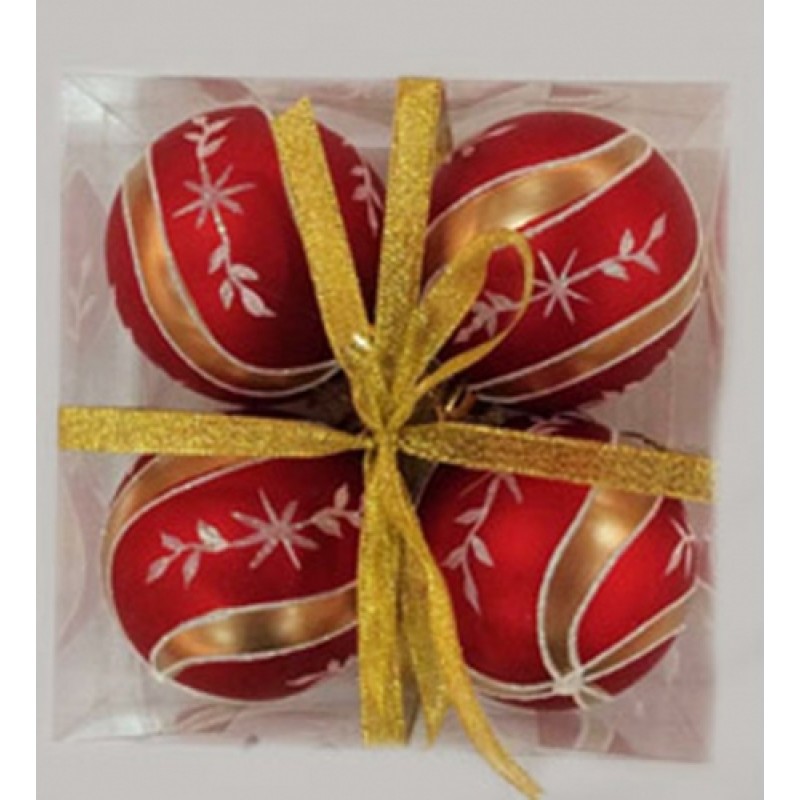 Набор елочных шаров "Новогодние узоры", 4 шт, 8 см, красные матов