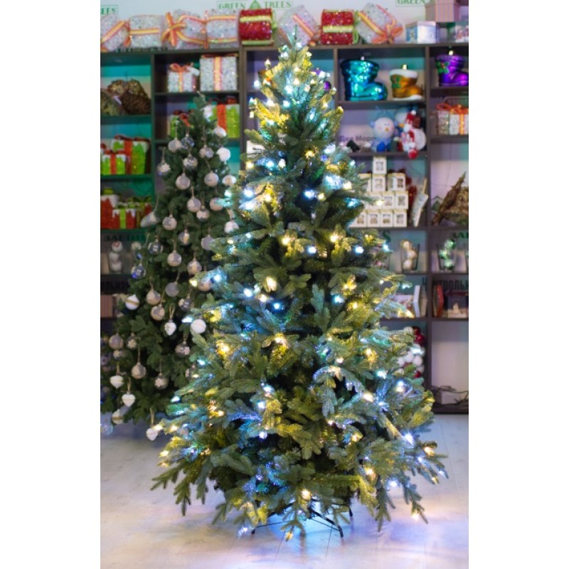 Барокко – елка искусственная с подсветкой из бело-голубых огней. Встроенная подсветка эффектно оттеняет зеленые ветви, что избавляет вас от покупки дополнительных огней и украшения. Все что нужно – добавить мишуры и шаров, и ваша новогодняя ель готова радовать гостей и украшать интерьер.