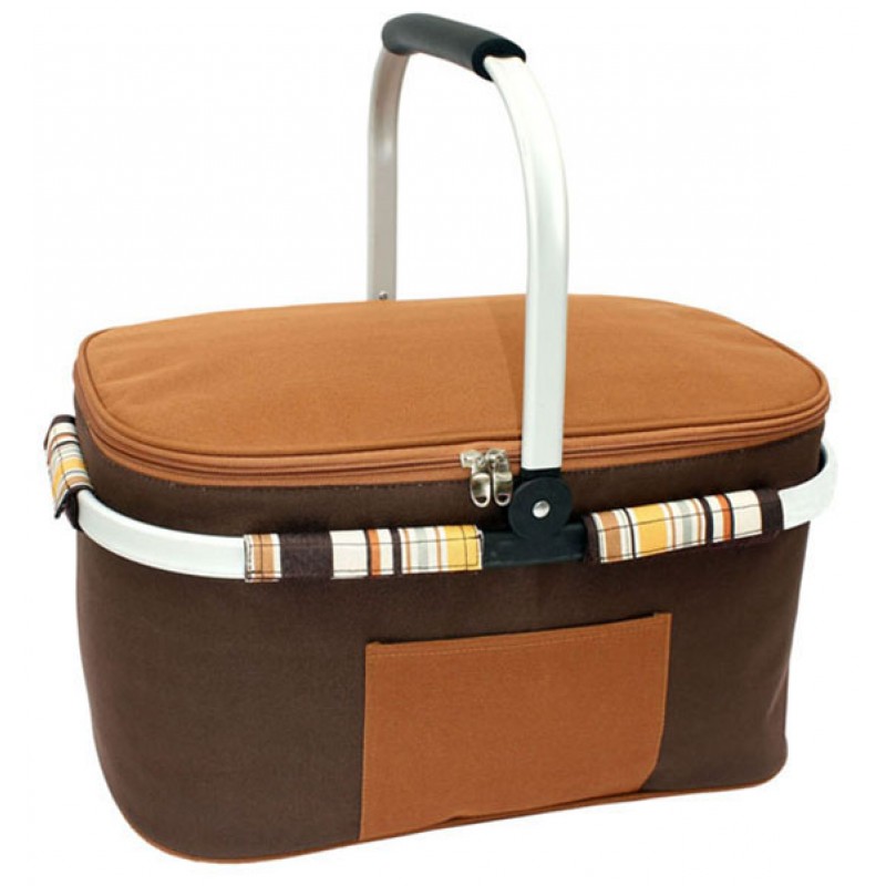 Необычная модель данной сумки по форме и внешнему виду напоминает корзинку для пикников. Она пошита из полиэстера и выполнена в теплых коричневых тонах. Механизм закрытия – молния с двумя собачками. Сбоку имеется карман.