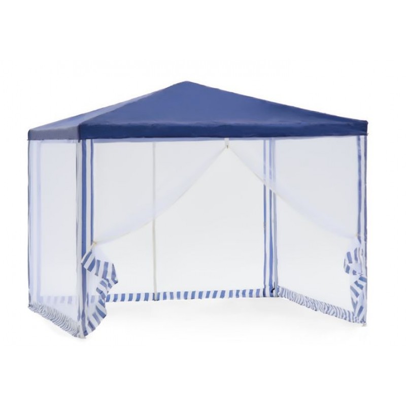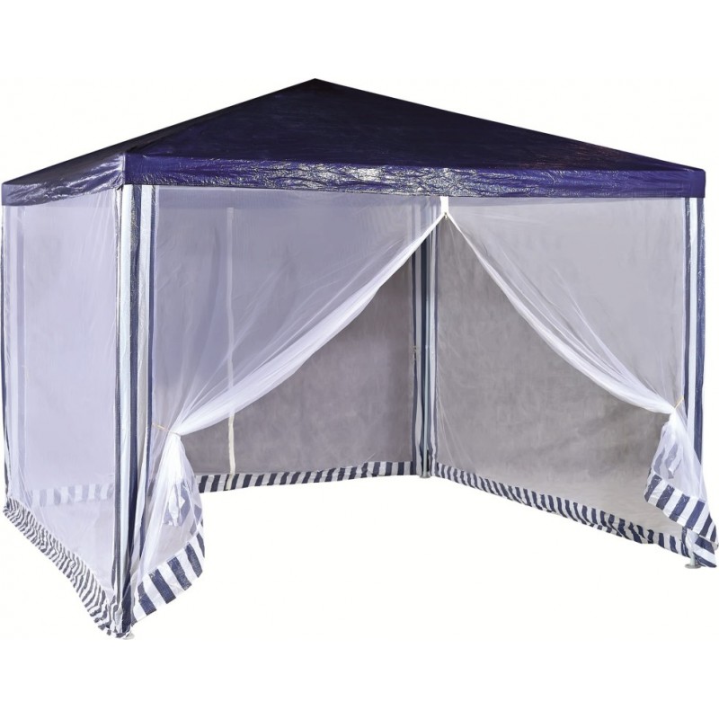 Модель Green Glade 1033 изготовлена из сетчатого полиэтилена. Непрозрачная крыша отлично защищает как от солнечных лучей, так и дождя – выполнена она в синем цвете. Стенки, которыми оборудован этот садовый павильон, представляют собой надежную москитную сетку.