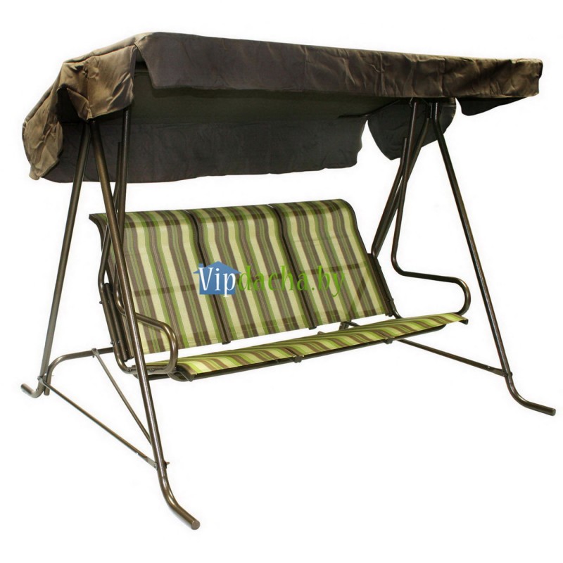 Трехместные качели CANADA сделают отдых на свежем воздухе не только комфортным, но и приятным от общения с друзьями. Устойчивая и прочная конструкция основы сделана из стали, а стильные сиденья в коричнево-зеленую полоску – из материала текстилена, прочного и устойчивого к неблагоприятным влияниям окружающей среды и, в то же время, очень деликатно поддерживающего тело. А для дополнительного комфорта и защиты от солнечных лучей предусмотрен тент из плотного полиэстера.