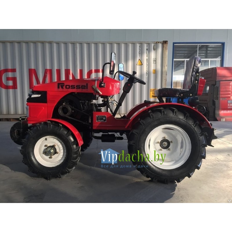 Имеется передняя и задняя светооптика. Появились боковые зеркала заднего вида. На панели приборов разместились показания зарядки, уровня топлива и давления масла. Надежный минитрактор Rossel XT-184D можно приобрести в Минске с доставкой по Беларуси. Есть площадка для тест-драйва. Трактор Вам понравится. Звоните.