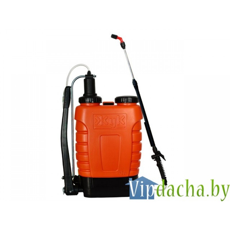 Опрыскиватель ранцевый ОГ-112 <Жук> принадлежит к устройствам гидравлического типа, где подача и распыл рабочей жидкости осуществляется за счет аккумулированной энергии сжатого воздуха. Сжатие воздуха в колбе происходит при перекачивании жидкости из бака в колбу насосом. Бак опрыскивателя служит резервуаром для жидкости.