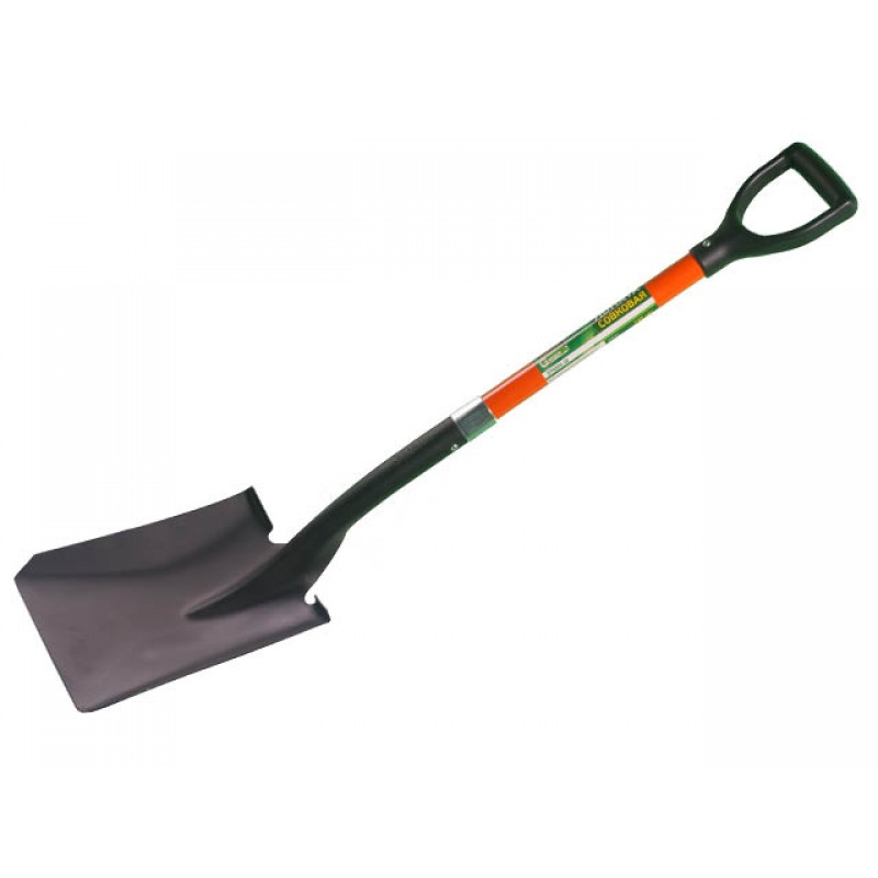Лезвие изготовлено из высокоуглеродистой закаленной стали с защитным антикоррозийным покрытием. Фиберглассовый черенок с удобной пластмассовой ручкой. Ширина полотна: 235 мм, Высота полотна: 550 мм, Длина лопаты с черенком и ручкой: 1020 мм.