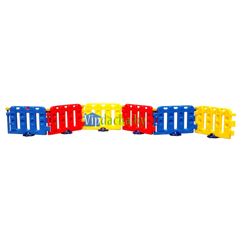 Ограждение для игровой площадки Sundays QC-10009 сделано из качественного и безопасного пластика. Заграждение выполнено в виде миниатюрного разноцветного заборчика с нарисованными на нем простыми геометрическими фигурами. Заграждение не только отделяет территорию детской площадки, но и дополняет ее своим приятным дизайном. Общая протяженность забора – 4,5 метров, высота – 20 см. Детали заборчика удобно и просто крепятся друг к другу, для установки на пол имеются держатели в форме цветка.