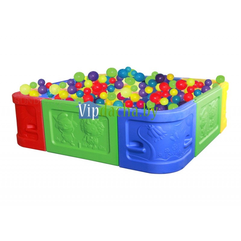 Просторный сухой игровой бассейн для шариков Sundays QC-10004 квадратной формы. Подходит для игр малышей даже раннего возраста. Игровой бассейн выполнен из прочного безопасного пластика, стенки имеют яркую расцветку и украшены привлекательными рисунками. Игры с шариками в бассейне способствуют формированию правильной осанки, укрепляют мышечный тонус, к тому же для малышей - это просто веселый способ провести время за купанием в разноцветных шариках. Шарики в комплект с бассейном не входят.