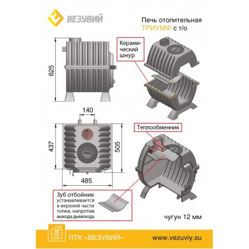 Отопительная печь Везувий Триумф 180 с теплообменником