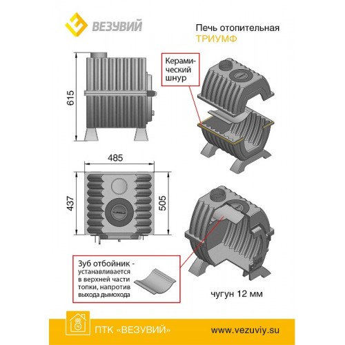 - Топка состоит из двух чугунных элементов, толщиной не менее 12 мм.